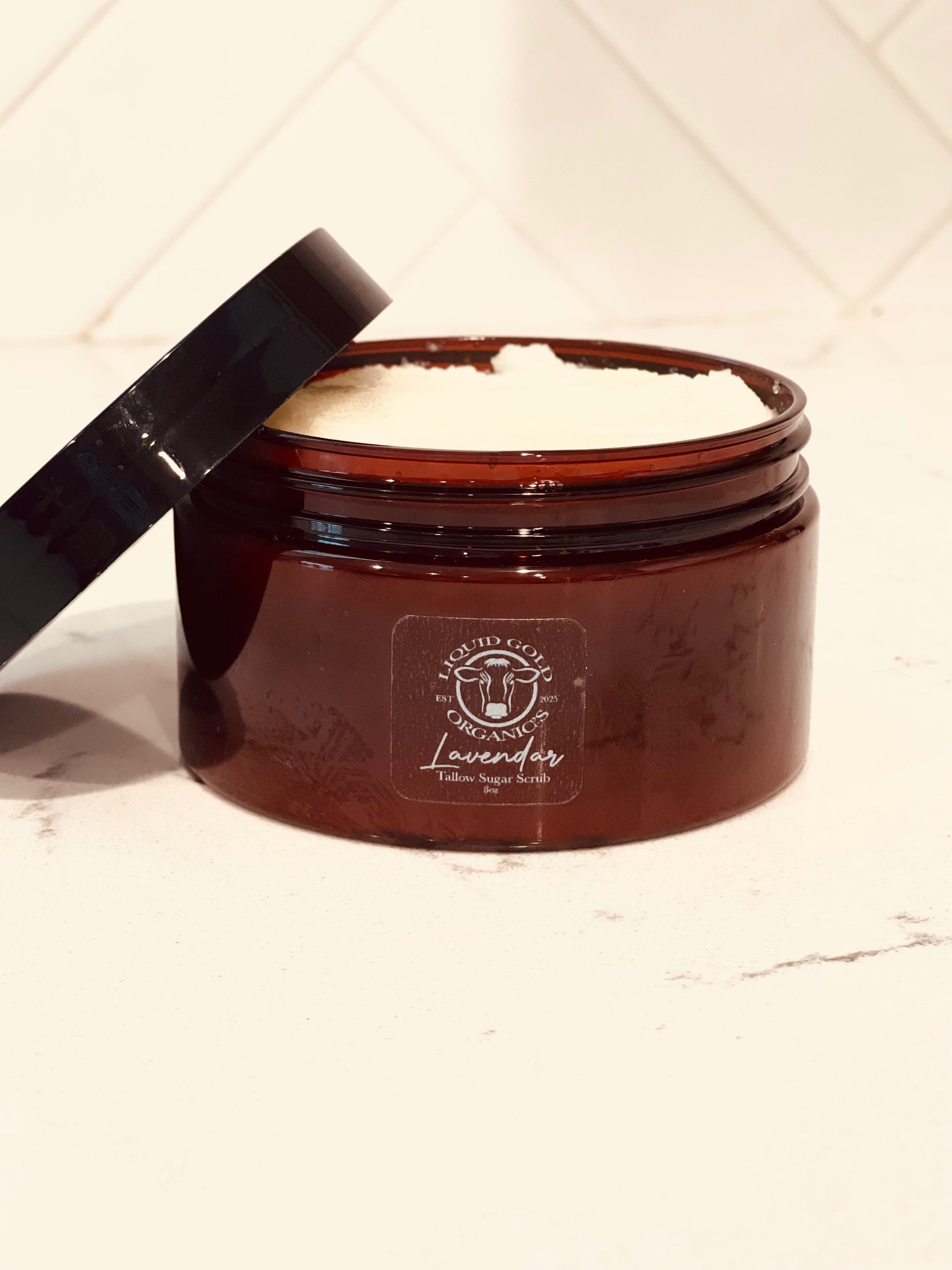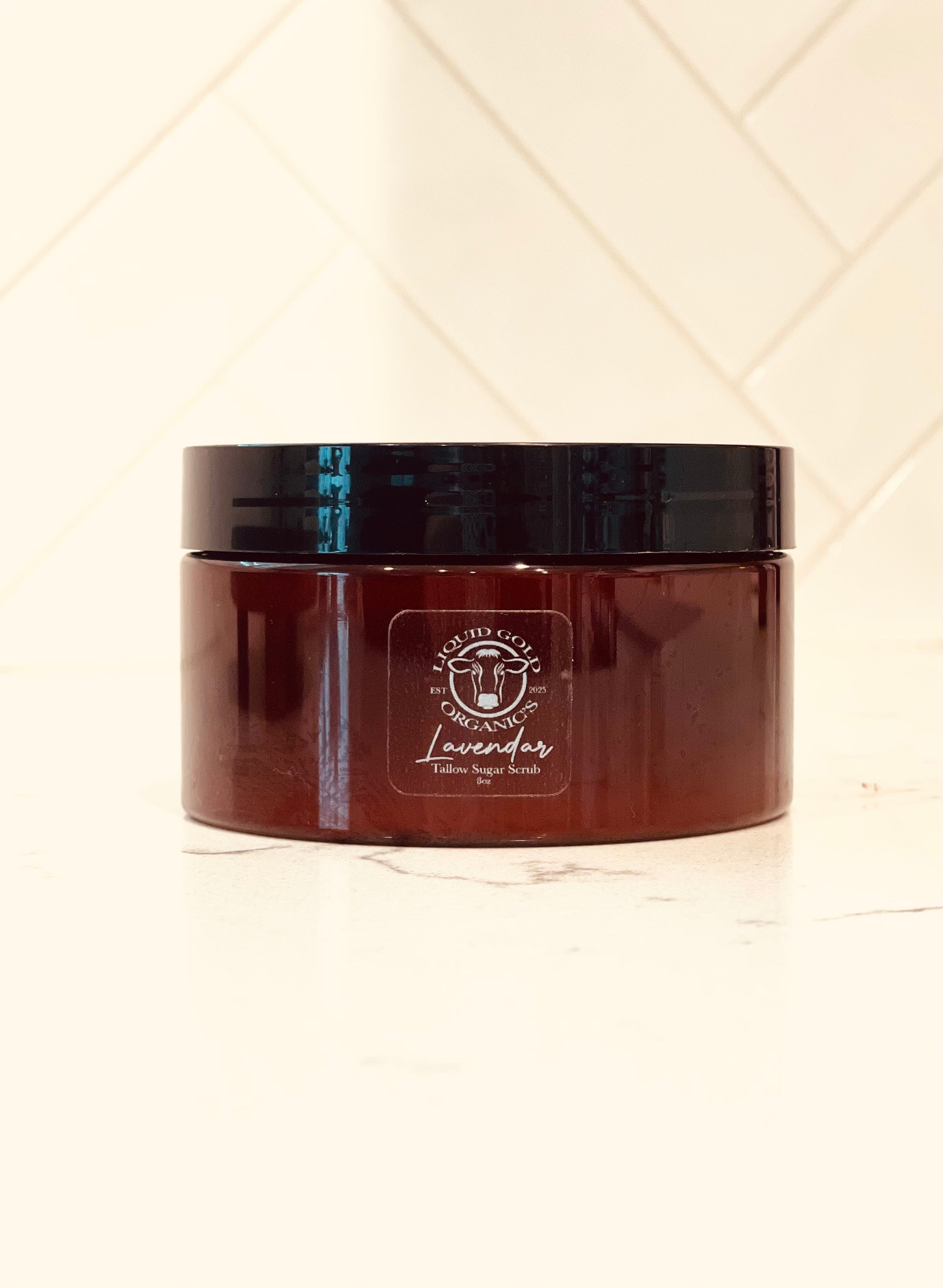 Our Lavender Tallow Sugar Scrub is perfect for face and body. This combination of natural sugar and nourishing oils will give you glowing, and deeply hydrated skin. This scrub will become your new favorite must haves.